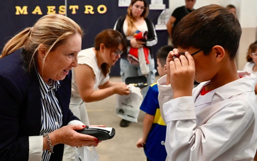 En la Escuela Primaria N° 24, 64 chicas y chicos recibieron los anteojos que necesitaban, mientras que otros 86 pares de lentes fueron entregados a estudiantes de la Escuela Primaria Nº 27.
